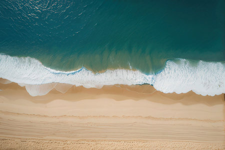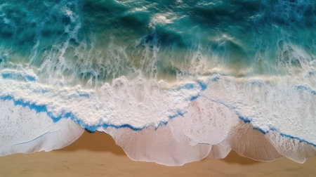 Aerial view of ocean waves breaking on the sandy beach. Top view generative AI