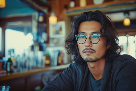 Relaxing Beach Vibes: Man in Glasses at Beach Bar