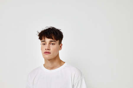 Tired guy portrait. Anxiety problem. Jobless boredom. Portrait of pensive depressed asian man looking at camera isolated on white empty space background.