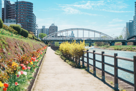Scenery of skyscrapers along the Tama River