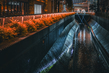 Night urban waterway. Shooting Location: Shibuya -ku, Tokyo