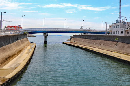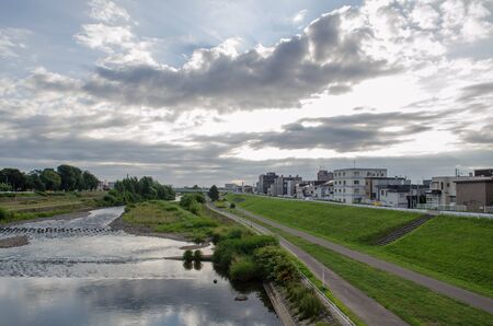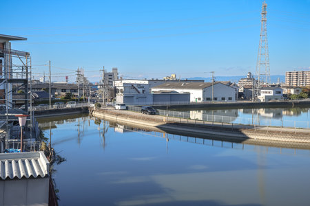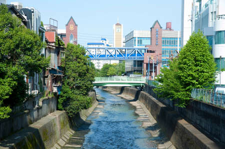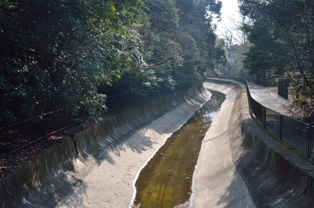 Water canal in Japan city, Beautiful landscape of Japanese public irrigation canal.
