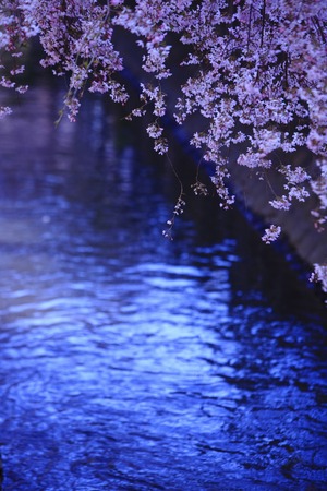 Night Cherry Blossom Bridge over Canal