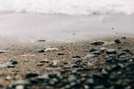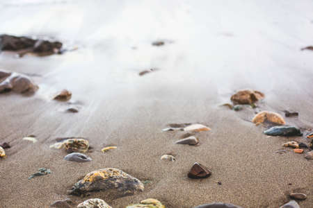 Sea shoreline, wet sand and waves. Vacation at the beach