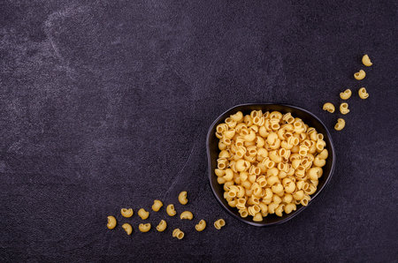 Raw uncooked pasta over dark background