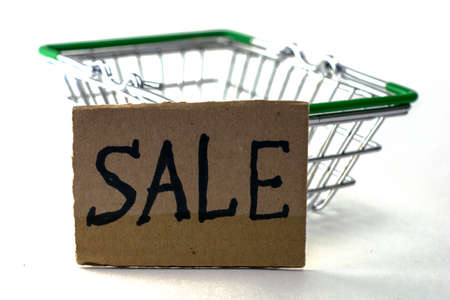 White 'SALE' Text on an Orange Square Paper Note. White Background