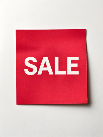 White 'SALE' Text on a Red Square Paper Note. White Background