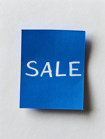 White 'SALE' Text on a Blue Square Paper Note. White Background