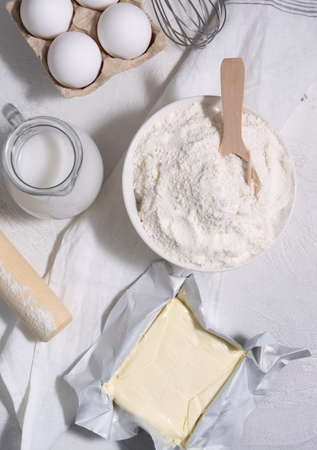 Cooking Christmas cookies. Top view of ingredients for baking homemade cookie