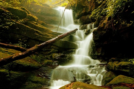 Beautiful waterfall in the forest, long exposure photo, soft focus
