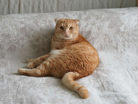 scottish fold red cat at home