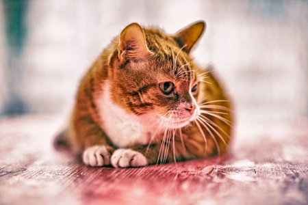 portrait of a lying red cat