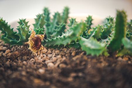 Soft thorny cacatus on the ground with big flora