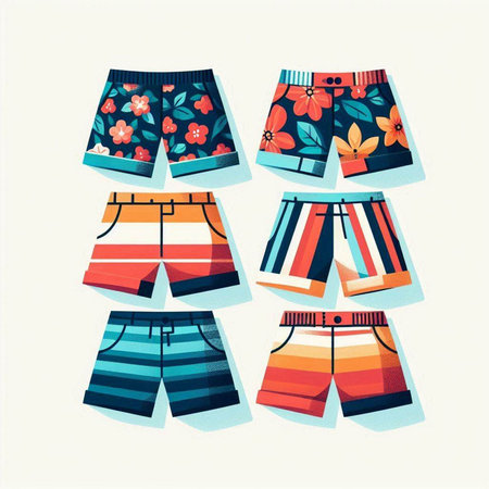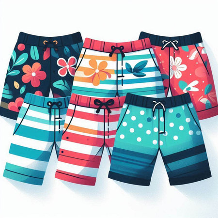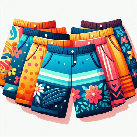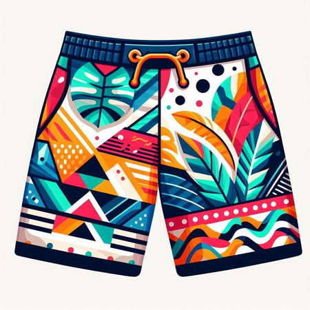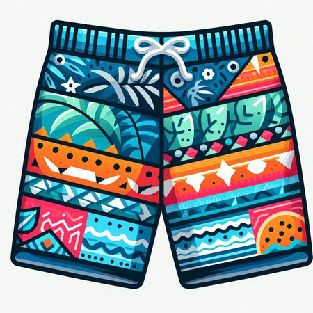 Swimming trunks with colorful patterns. Vector illustration for your design