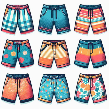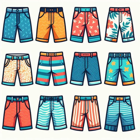Shorts collection. Vector illustration. Shorts set. Shorts design.