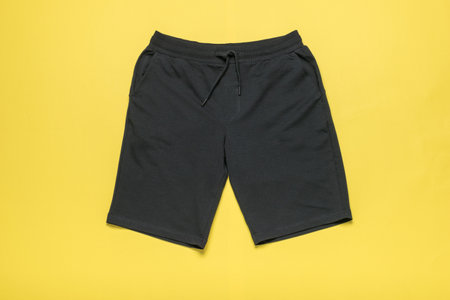 Men's Black Athletic Shorts on Yellow Background - Casual Activewear Fashion
