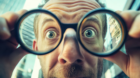Man Astonished by Unexpected Binoculars View