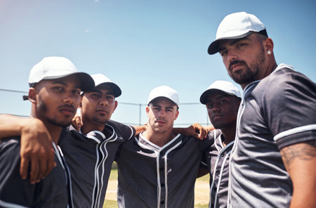 They dont call it team mate for nothing. Rearview shot of a group of young men standing together in solidarity at a baseball game.