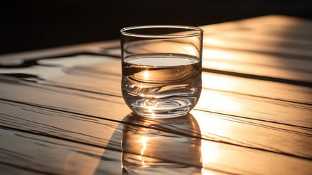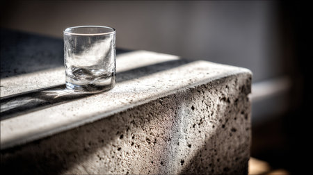 A clear, empty glass rests on a textured surface, bathed in soft light and shadow. This image captures a serene, minimalist atmosphere ideal for design inspiration.