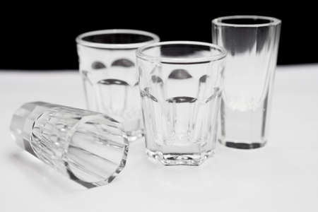 Shot glass on white and black background