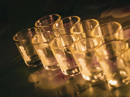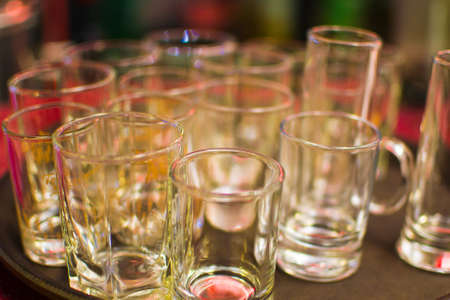 Empty shot glasses for alcohol in the bar.