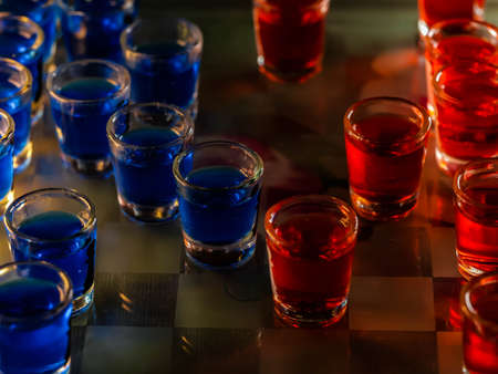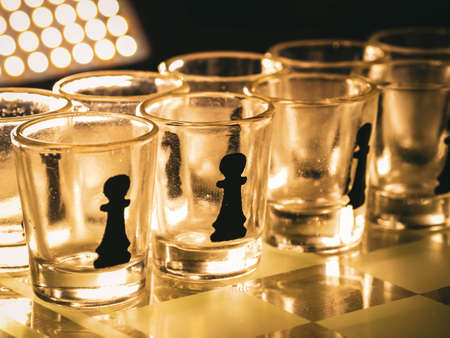 Chess board with shot glasses