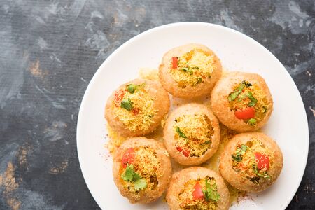 indian traditional food name pani puri or Golgappa, gol gappa or panipuri, the indian chat food.
