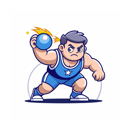 Cartoon Athlete Preparing to Throw Shot Put with Fire