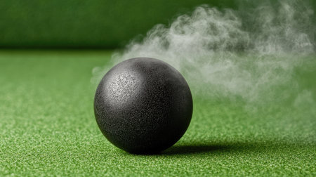 The black snooker ball resting near the corner pocket with a touch of mist in the air, adding suspense to the scene.