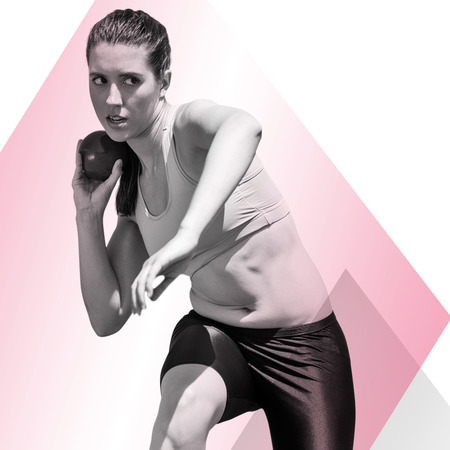 Profile view of sportsman practicing shot put against composite image of spotlight