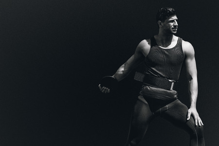 Sportsman practising shot put. Professional sport concept. Horizontal sport poster, greeting cards, headers, website