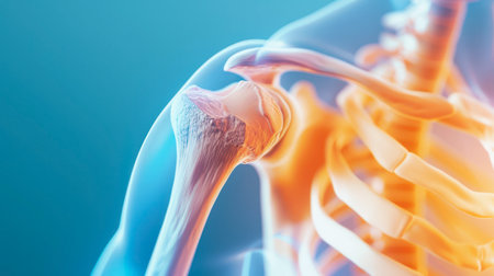 Detailed representation of a human shoulder joint highlighting movement and anatomy