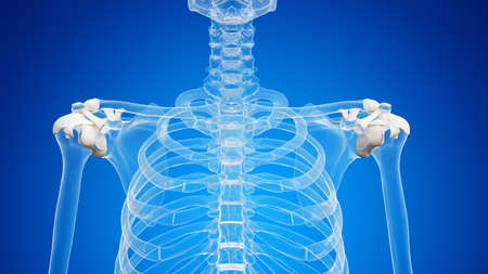 3D illustration, body painful - cervical spine skeleton x-ray, medical concept. Humerus, collarbone.