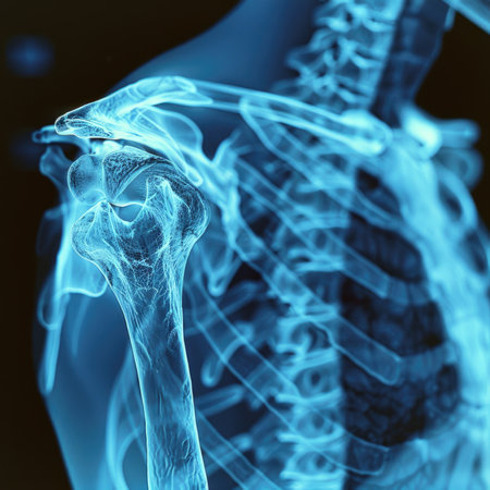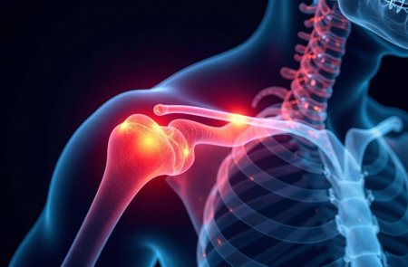Blue-Tinted X-ray Reveals Detailed Shoulder Joint Inflammation and Swelling Signs