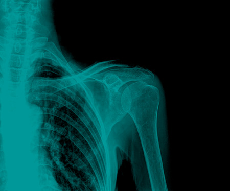 Vintage looking Medical X-Ray imaging of a shoulder, used in diagnostic radiology of skeleton bones