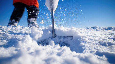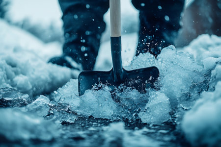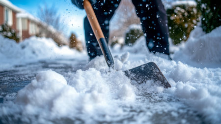 Efficiently tackle winter's aftermath by removing snow and clearing sidewalks with a sturdy shovel, transforming the landscape into a safe and accessible passage.AI Generated