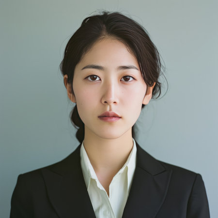 30-year-old Japanese woman, with a calm and mature appearance. Formal and elegant attire.
