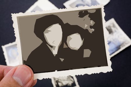 old vintage photos on table