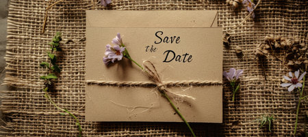 Rustic Save the Date Card with Kraft Paper and Pressed Flowers for Wedding Announcements