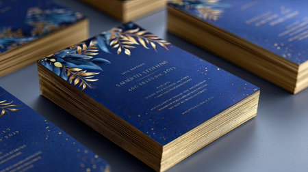 Discover exquisite navy blue wedding invitations adorned with gold floral designs, perfect for a romantic and memorable celebration. Ideal for all special events.