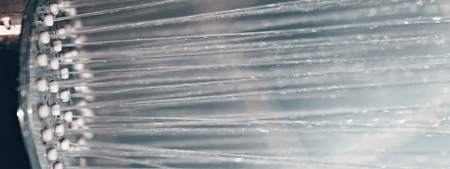 Shower head and falling water drops.