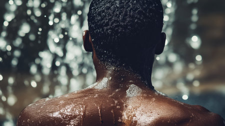 Shower Time: Young African American Man from the Back