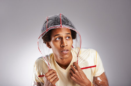 Come what may Ill still be stylish. Studio shot of a young man wearing a fashionable raincoat.
