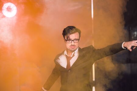 Pasadoble, latin solo dance and contemporary dance - Handsome male dancing into smoke cloud.