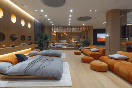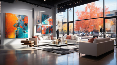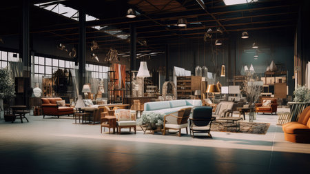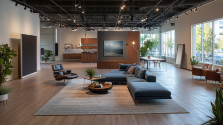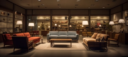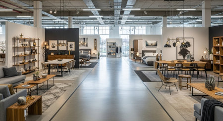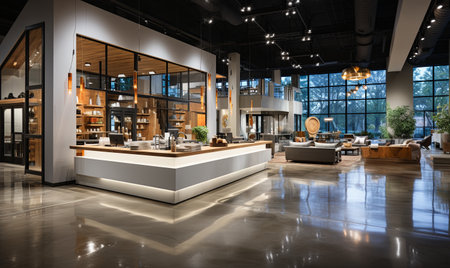 Interior of a modern furniture showroom.
