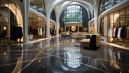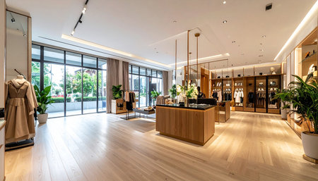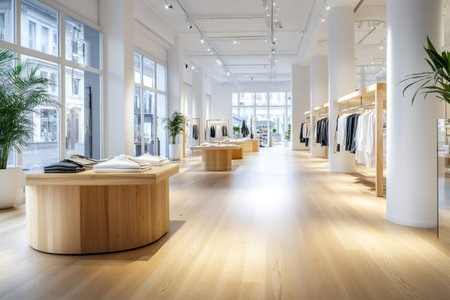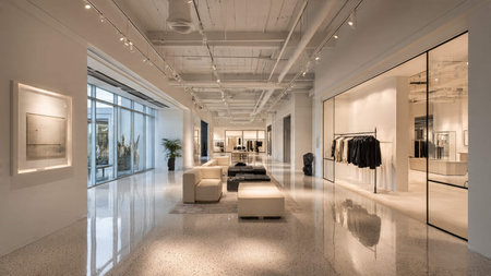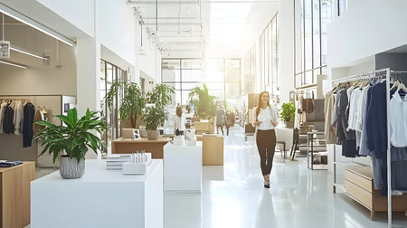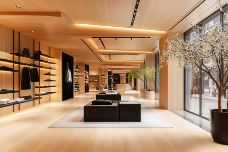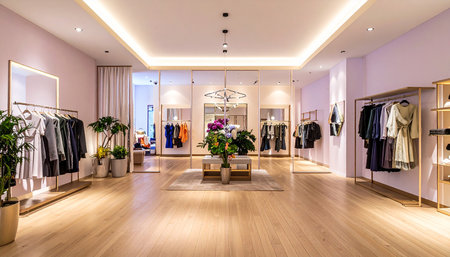 Contemporary retail showroom interior designed for an immersive shopping experience with modern fashion apparel