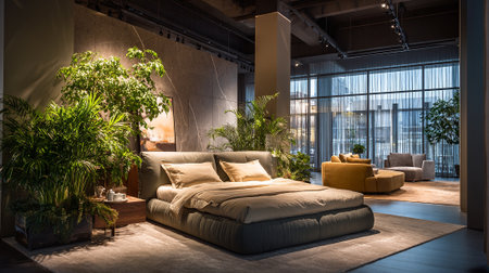 Luxurious Bedroom Interior with Lush Greenery and Modern Design Elements