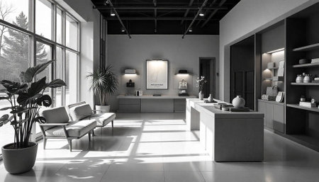 Modern boutique with minimalist design and elegant monochrome theme