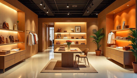Modern clothing store interior with elegant design and fashion pieces