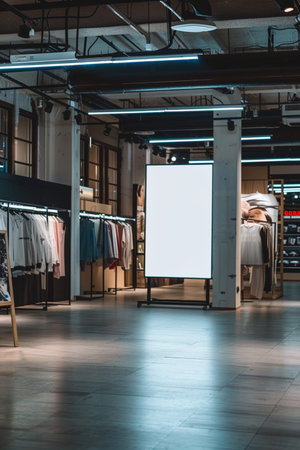 low angle view of blank white signboard in clothing store during daytime